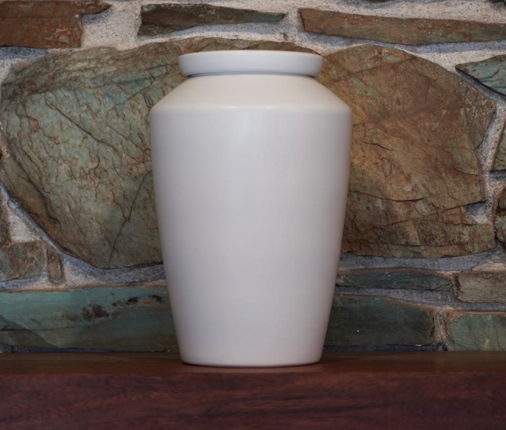 The white urn is so smooth and the lid fits perfectly. It's a very dignified final resting place.