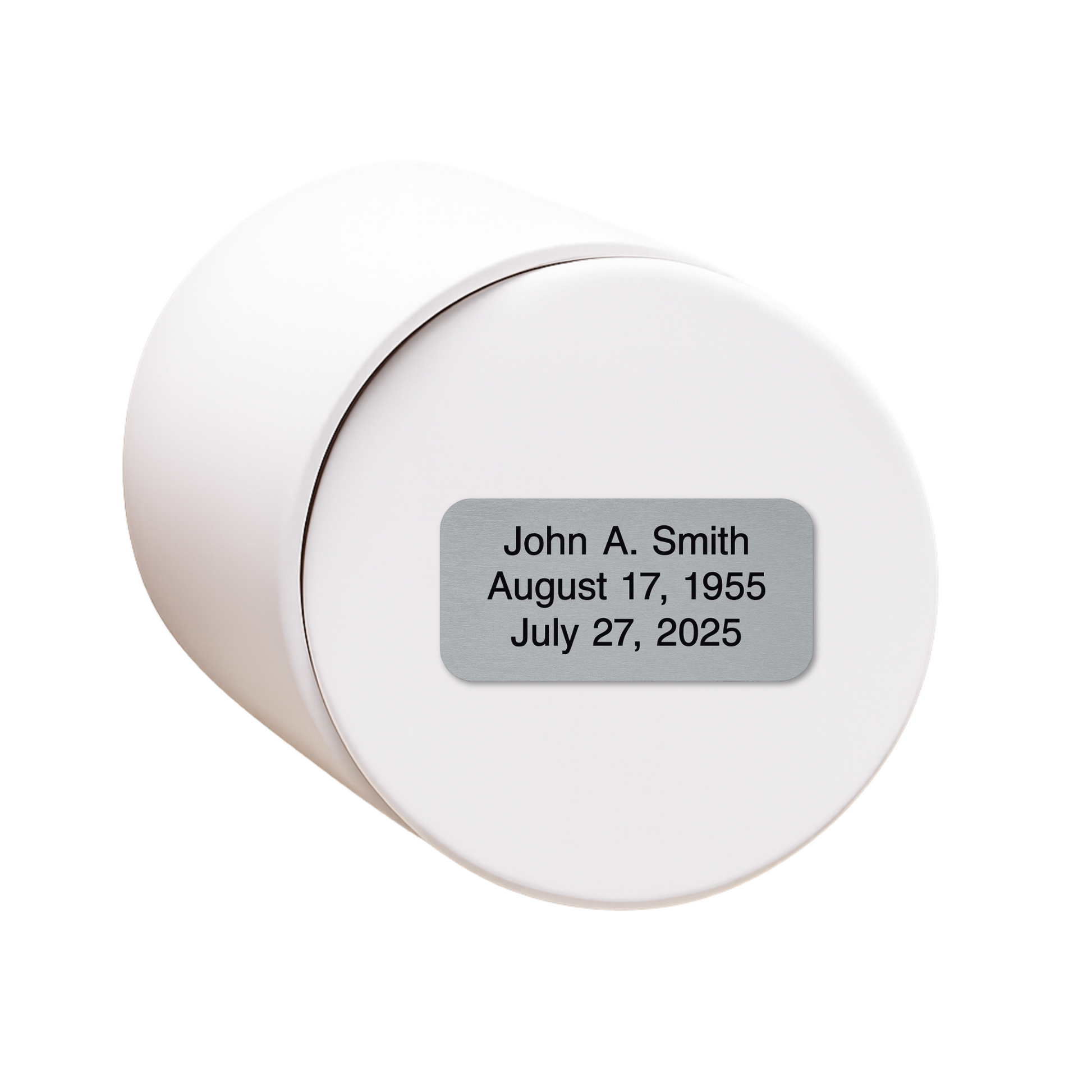 This high-quality ceramic cremation urn for human ashes is a modern, handcrafted tribute suitable for display in the home, garden, or columbarium. Finished in a simple white, this keepsake-size urn symbolizes strength, remembrance, and timeless love. Its simple yet refined design honors the dignity of a loved one’s life, offering a meaningful and enduring memorial after cremation.